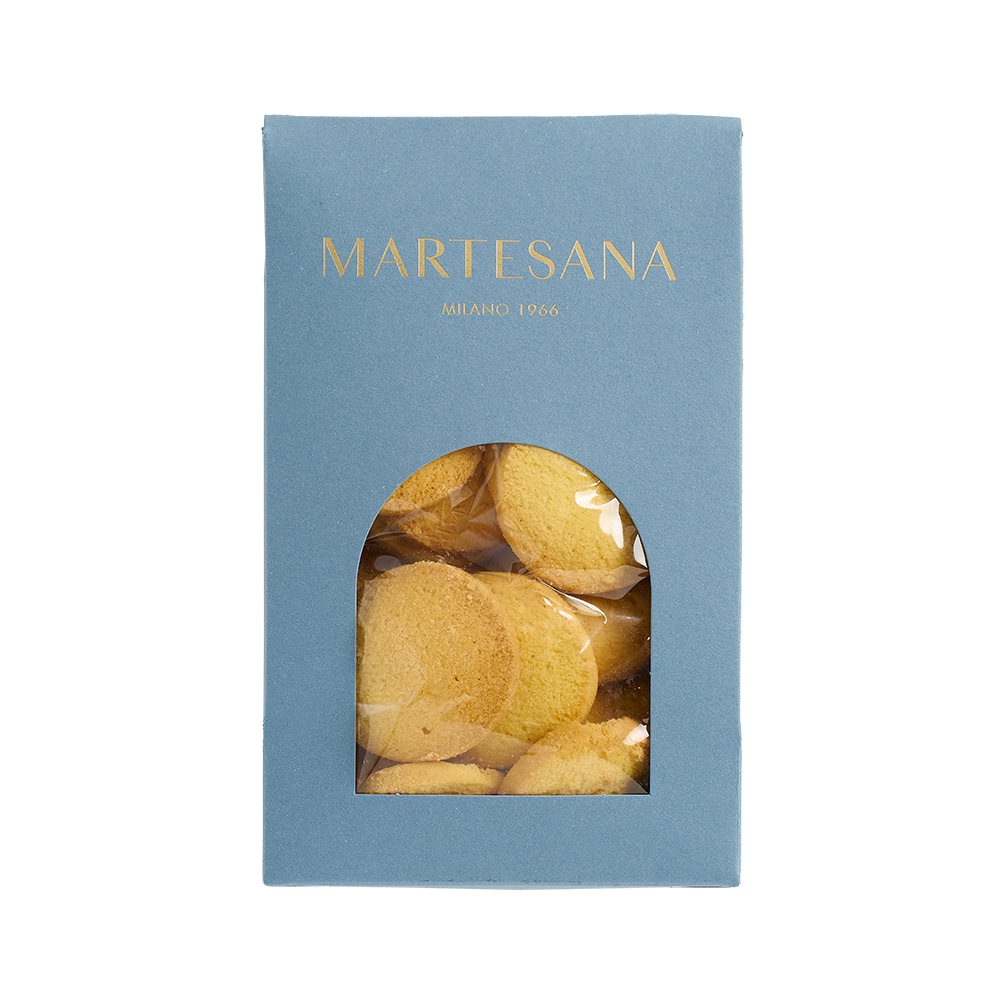 Farina di riso 23%, Farina di mais fumetto 22%, Burro (origine del latte: Italia), Zucchero, Uovo sgusciato pastorizzato da allevamenti a terra di origine: Italia, Estratto naturale di vaniglia, Sale. Può contenere: Lattosio, Glutine, Uova, Arachidi, Frutta a guscio, Soia e derivati.