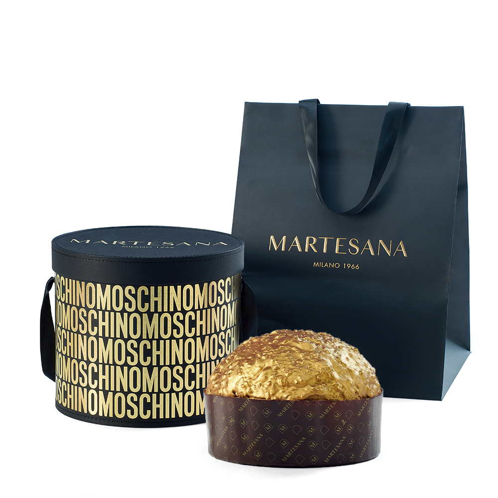 Panettone 87%: Farina di GRANO tenero tipo”00”, BURRO 19,9% (origine del LATTE: Paesi UE),Zucchero, Uva sultanina 11,5% (uva, olio di girasole), Cubetti di scorze d’arancia candite 11,5% (scorze di arancia, sciroppo di glucosio-fruttosio, zucchero), Tuorlo d’ UOVO sgusciato pastorizzato, da allevamenti a terra di (origine: Italia), Lievito naturale (contiene GRANO), Miele di acacia (provenienza: Paesi UE), Scorze di mandarini canditi 4,6% (scorze di mandarini, zucchero, sciroppo di glucosio-fruttosio), Sale, Acqua, Scorze d’arancia candite macinate (scorze di arancia, sciroppo di glucosio-fruttosio, zucchero), Scorze di limoni canditi macinati (scorze di limoni, sciroppo di glucosio-fruttosio, zucchero, succo di limone concentrato), Scorze di mandarini canditi macinati (scorze di mandarini, zucchero, sciroppo di glucosio-fruttosio), Estratti naturali di vaniglia, limoni e arance. Glassa di copertura 13%: Cioccolato bianco al caramello 75%(burro di cacao, zucchero, latte intero in polvere, latte magro in polvere, zucchero caramellizzato 2%, emulsionante: lecitina di soia, aroma naturale di vaniglia,sale), purea di nocciole Piemonte IGP, nocciole tostate, Colorato con E172, Conservante: acido sorbico.