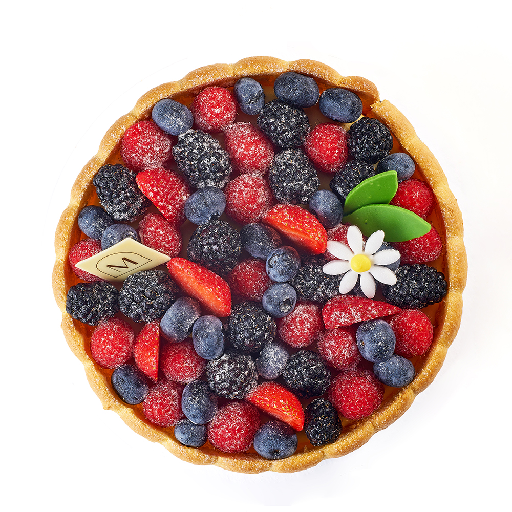 Ingredienti: Base torta – (Pan di Spagna bagnato alla vaniglia 47% (bagna alla vaniglia 40% (acqua, zucchero, liquore alla vaniglia (<1,2% v/v) 10%), UOVO sgusciato pastorizzato 20%, zucchero, farina di GRANO tenero di tipo ”00”, fecola di patate, tuorlo d’UOVO sgusciato pastorizzato da allevamento a terra (origine: Italia), miele di acacia (origine: Paesi UE), aroma naturale di vaniglia e limone), Crema “Bavarese” alla vaniglia con frutti di bosco 53% (crema pasticcera 27% (LATTE intero pastorizzato di origine: Italia, zucchero, tuorlo d’UOVO sgusciato pastorizzato da allevamenti a terra di origine: Italia, amido di riso, scorze di limone, estratto naturale di vaniglia), Panna 27% (panna pastorizzata (LATTE)), Frutti di bosco semicanditi 23% (frutti di bosco (ribes rosso, more, lamponi, ribes nero in proporzione variabile), zucchero, sciroppo di glucosio), Mascarpone 14% (crema di LATTE, correttore di acidità: acido citrico), acqua, zucchero a velo, liquore alla vaniglia (<1,2% v/v) 2%, gelatina alimentare, bacche di vaniglia 0,05%); Decorazione torta – (Frutti di bosco freschi 58% (mirtilli, more, lamponi in proporzione variabile), Crema “bavarese” alla vaniglia 29% (crema pasticcera 35% (LATTE intero pastorizzato (origine: Italia), zucchero, tuorlo d’UOVO sgusciato pastorizzato da allevamenti a terra (origine: Italia), amido di riso, scorze di limone, estratto naturale di vaniglia), Panna 35% (panna pastorizzata (LATTE)), Mascarpone 18% (crema di LATTE, correttore di acidità: acido citrico), acqua, zucchero a velo, liquore alla vaniglia 2% (<1,2% v/v), gelatina alimentare, baccelli di vaniglia 0,05%), Biscotto decorativo 12% (albume d’UOVO sgusciato pastorizzato 26%, farina di GRANO tenero di tipo “00”, zucchero, Tuorlo d’UOVO sgusciato pastorizzato da allevamenti a terra (origine: Italia), miele di acacia (origine: Paesi UE), fecola di patate, sale), Decorazione di cioccolato 0,5% (cioccolato bianco (zucchero, burro di cacao, LATTE intero in polvere, LATTE scremato in polvere, Emulsionante: lecitina di SOIA), burro di cacao), Targhetta decorativa al cioccolato fondente 0,5% (cacao min. 61% – fava di cacao, zucchero, burro di cacao, colorante: E100, emulsionante: lecitina di girasole, polvere di LATTE intero, estratto di vaniglia)).